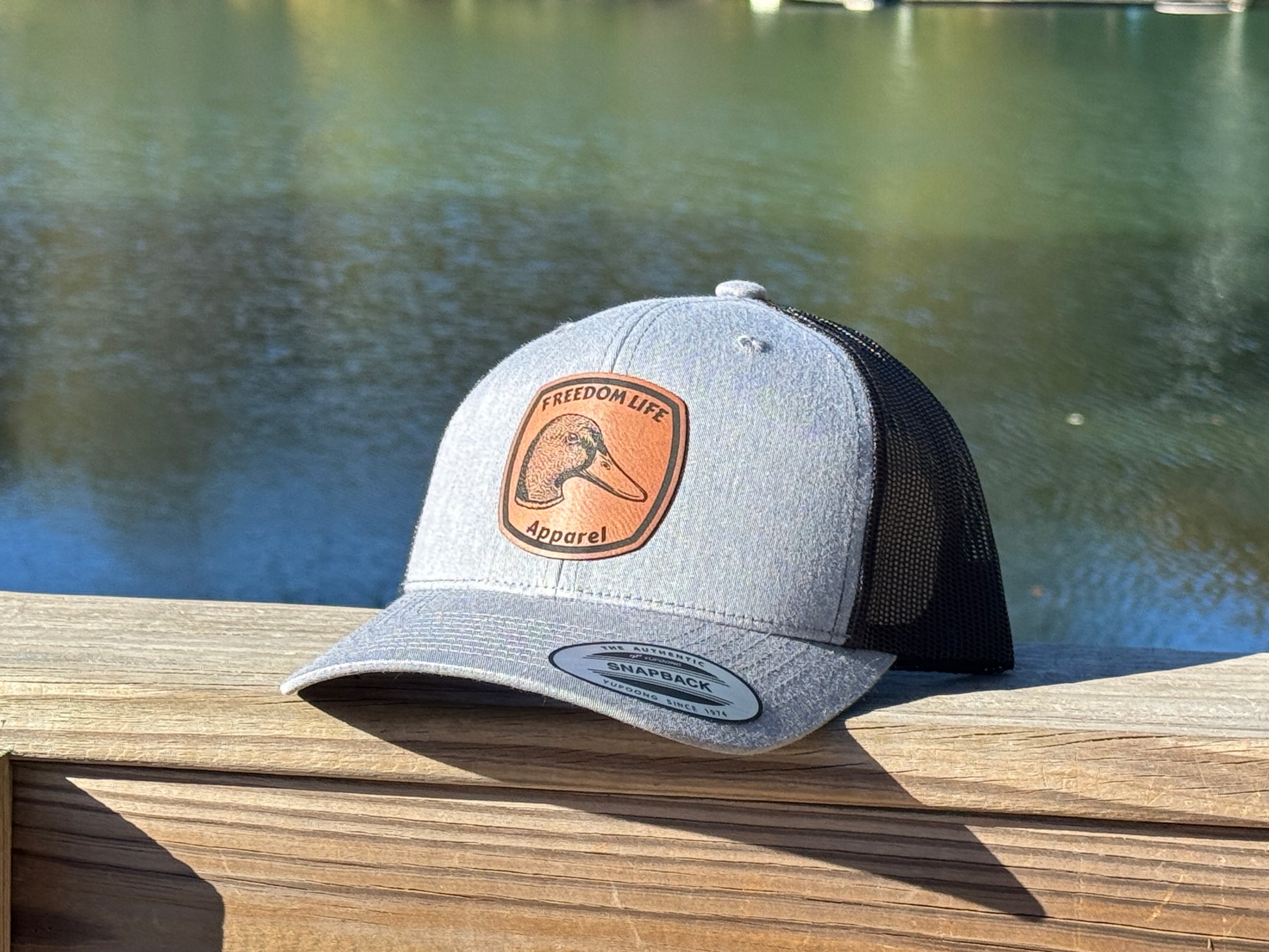 For those who rise with the sun and head to the blind, the Freedom Life Apparel Leather Freedom Duck Hat is built just for you. Featuring a detailed leather patch with a proud duck profile and the Freedom Life logo, this hat captures the heart of waterfowl hunting and outdoor heritage.