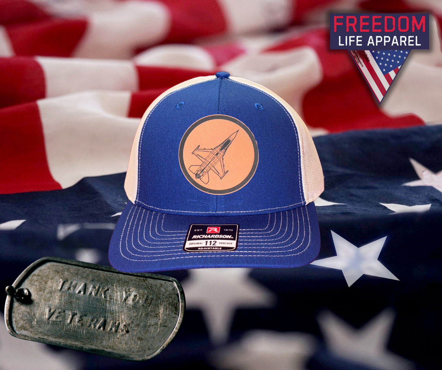 The F16 (Circle) Hat showcases the sleek, top-view outline of the iconic F-16 Fighting Falcon—expertly embedded into premium rawhide leather and set within a bold circular design. This patch is a nod to the agility and firepower of one of America’s most versatile fighter jets.