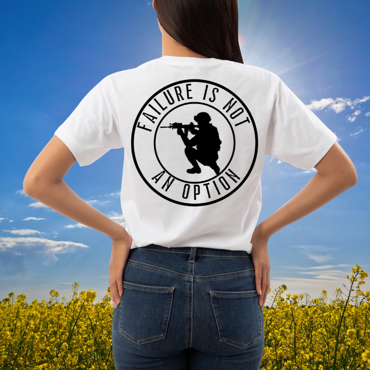 At Freedom Life Apparel, we believe in grit, determination, and never backing down. Our Failure Is Not an Option Shirt is designed for those who face every challenge head-on and refuse to quit. Whether you're a proud member of the military, a first responder, an athlete, or simply someone who lives by a no-quit mindset, this shirt represents your unstoppable spirit.