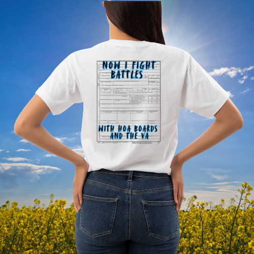 The battles don’t end when the uniform comes off. Freedom Life Apparel’s "Fighting Battles" shirt is a tribute to every veteran who’s traded combat zones for fighting HOA boards, the VA, and everyday civilian struggles. Featuring a bold design with a DD-214 military discharge form in the background, this veteran-inspired t-shirt brings humor and truth to life after service.