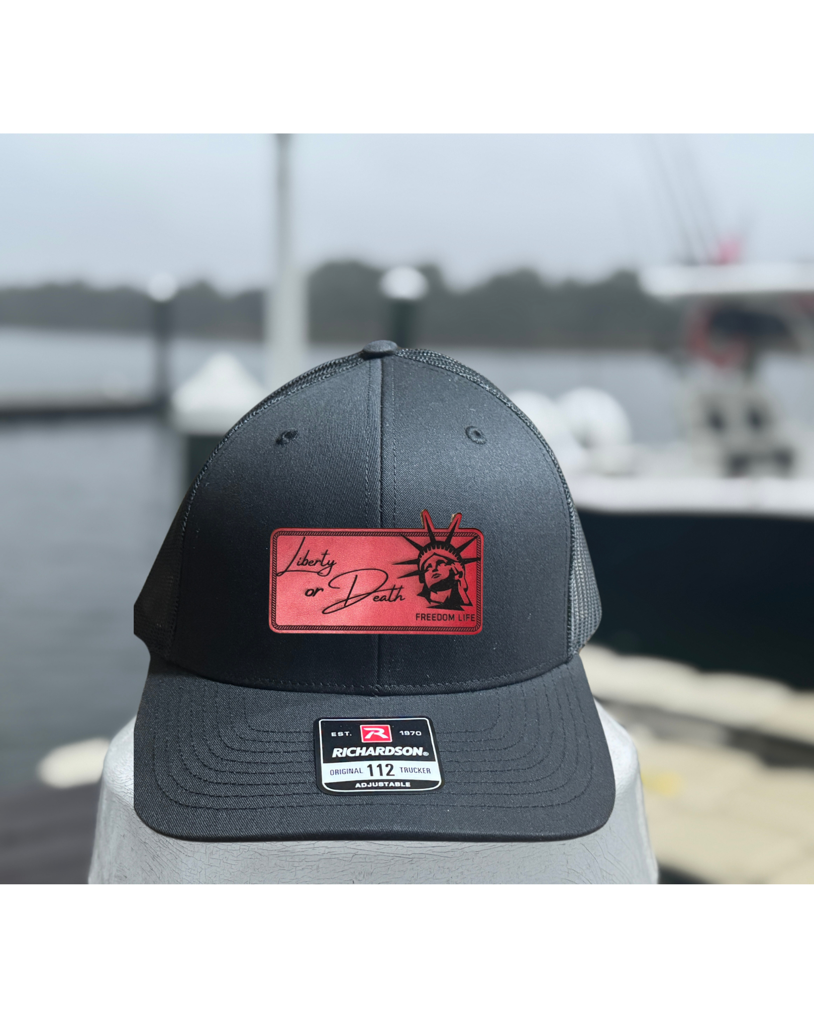 Crafted on a premium Richardson 112 trucker hat, this design is available with your choice of red or brown genuine leather patch, laser-etched for a sharp, long-lasting finish. Whether you’re on the water, at the range, or just repping your freedom lifestyle, this hat delivers all-day comfort, durability, and attitude.