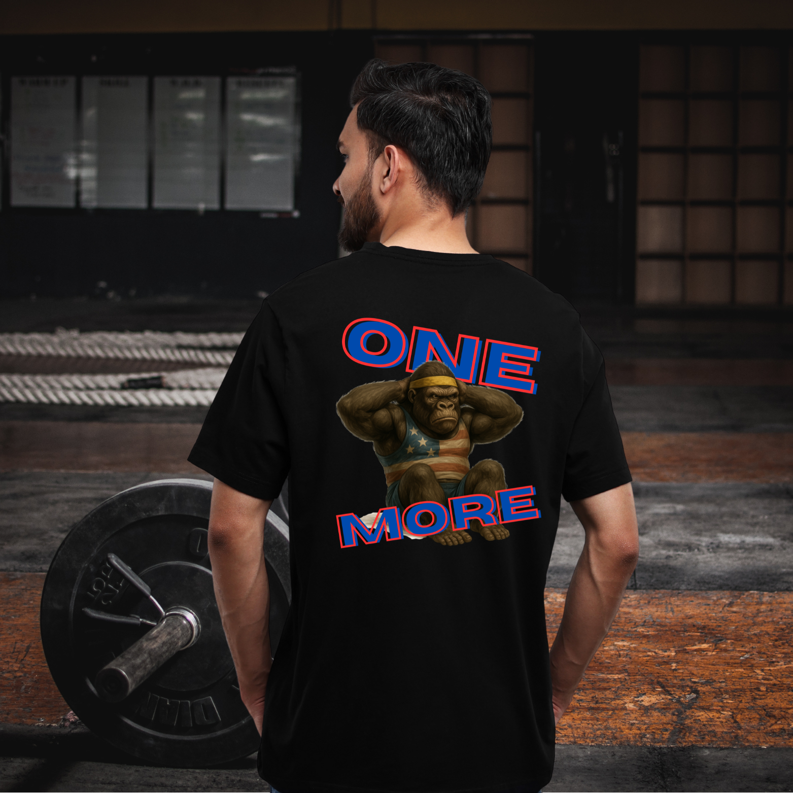 Bold “ONE MORE” front graphic with Peewee mid-workout