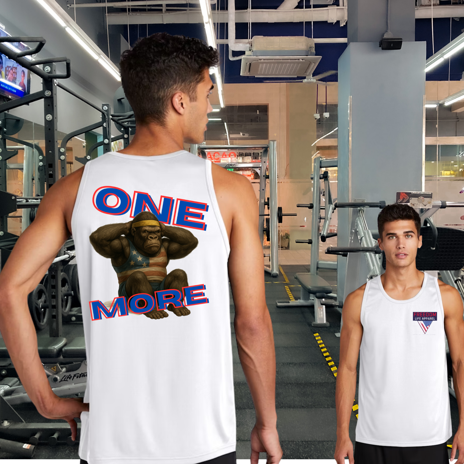 The One More shirt features Peewee, Freedom Life Apparel’s red-white-and-swole gorilla mascot, powering through sit-ups in his patriotic workout gear. His determined expression is a reminder that no matter how tired you are, there’s always room for one more push, one more lift, one more step toward your goals.