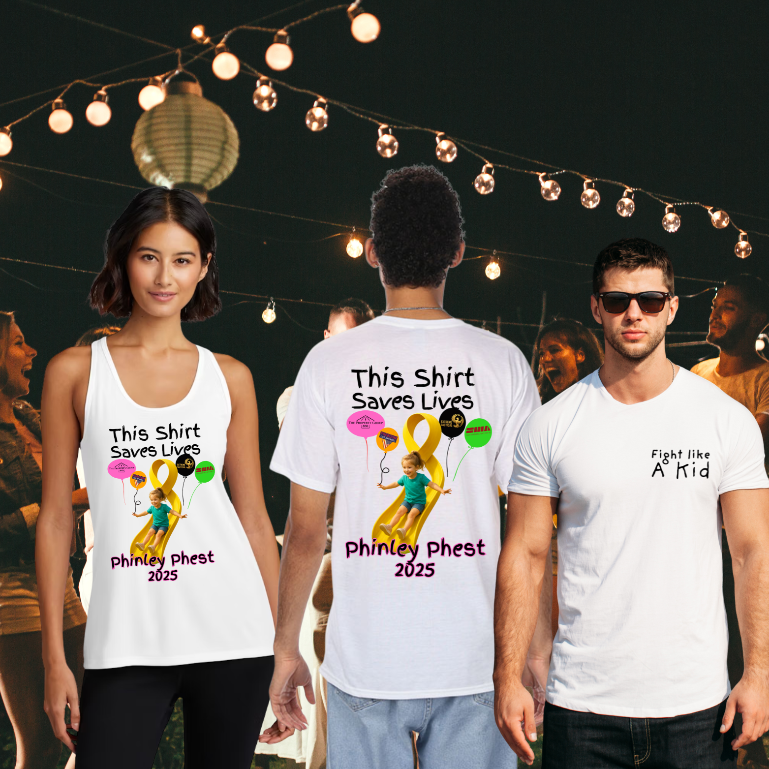 Join the fight against childhood cancer by wearing your heart on your sleeve—literally. The official Phinley Fest 2025 shirt features a powerful design with a bold message: Fight Like A Kid. Whether you choose a classic tee or a cool tank, every purchase helps fund critical research through the Phinley Fund—bringing hope, healing, and smiles to children and families impacted by pediatric cancer.