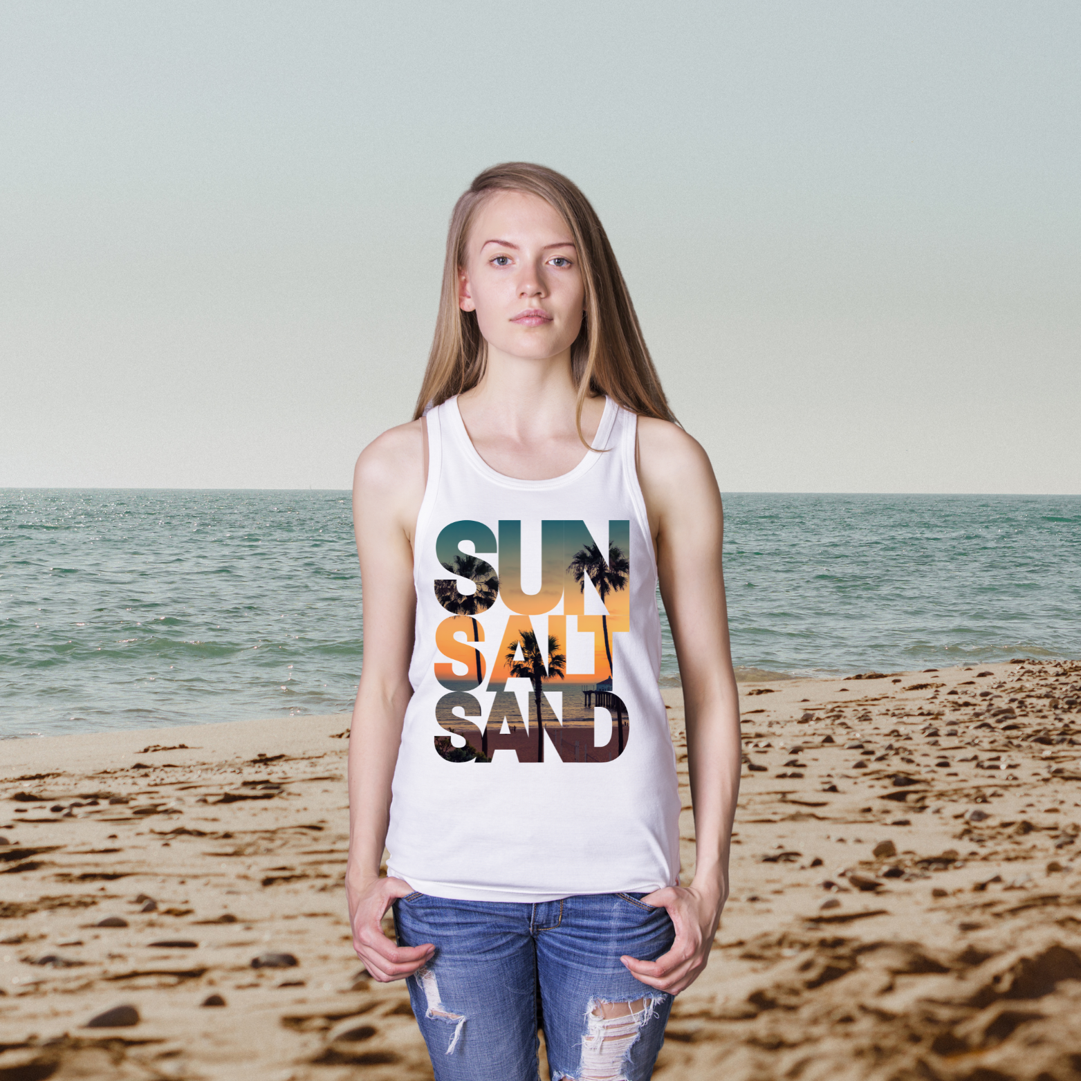Let your wardrobe soak up the coastal vibes with our SUN SALT SAND tee – where island attitude meets everyday comfort.