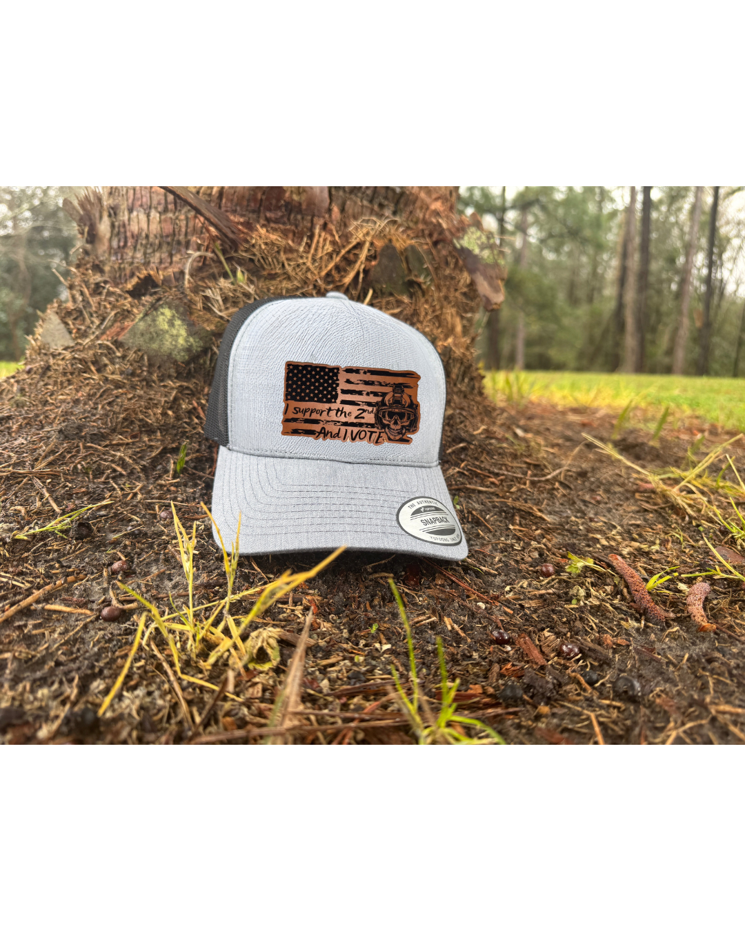 Freedom Life Apparel – Support the 2nd and I Vote Hat | Camo Leather & Rawhide Leather Options