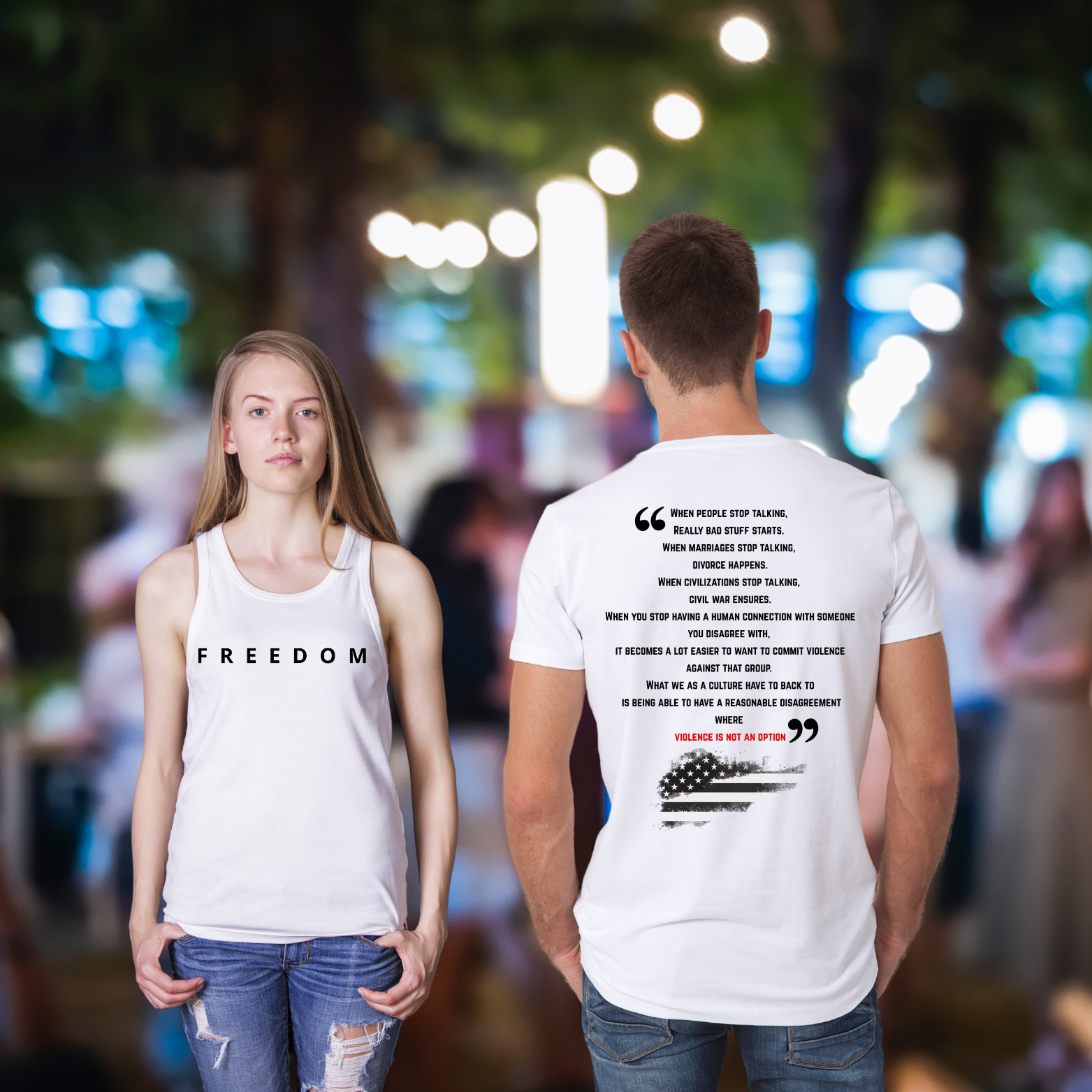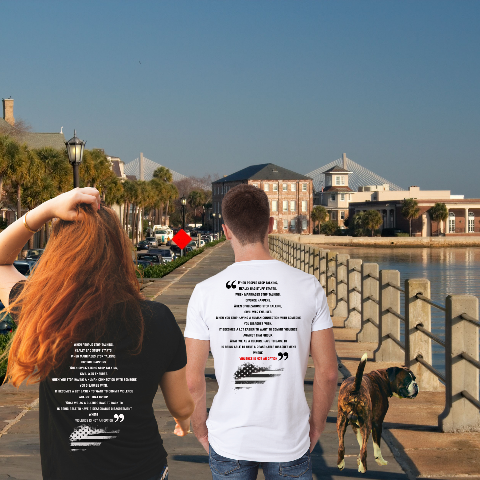 Freedom Life Apparel, Violence is Not an Option shirt, patriotic t-shirt, veteran-owned apparel, American values clothing, motivational shirt, unity and respect apparel, anti-violence shirt, freedom shirt, patriotic fashion brand